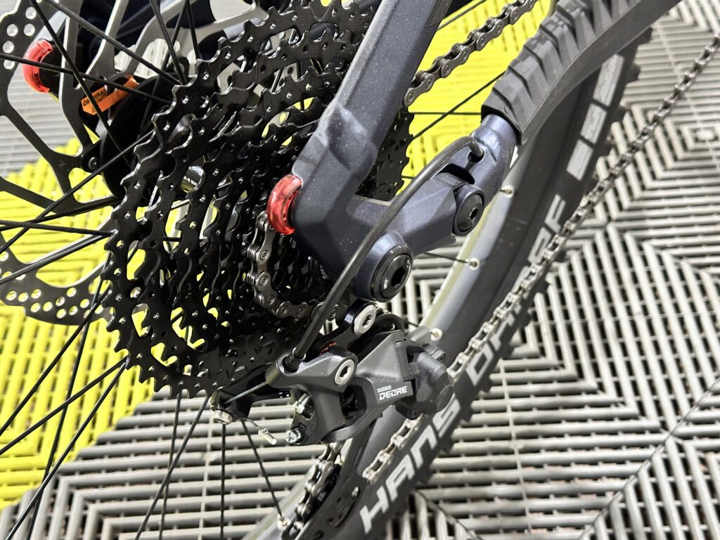 - Kaseta: SHIMANO Deore 10-biegowa (11-46T), zapewniająca szeroki zakres przełożeń.