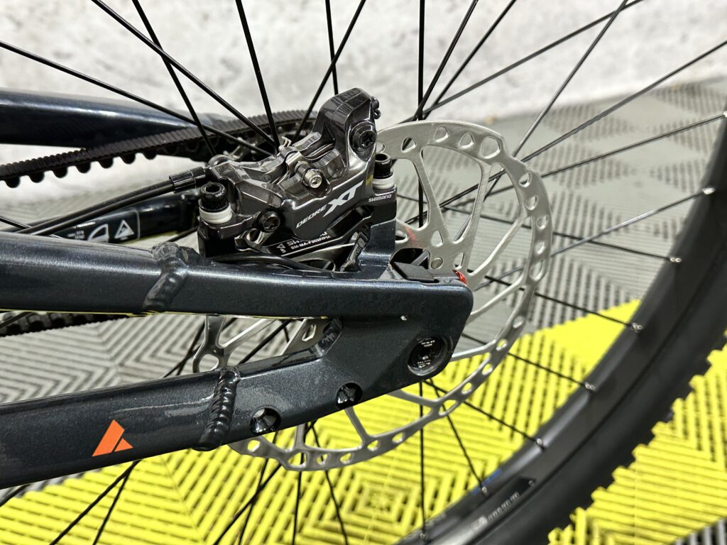 - Hamulce: SHIMANO Deore XT BR-M8120, hydrauliczne tarczowe hamulce, zapewniające skuteczne i pewne hamowanie na stromych zjazdach.
