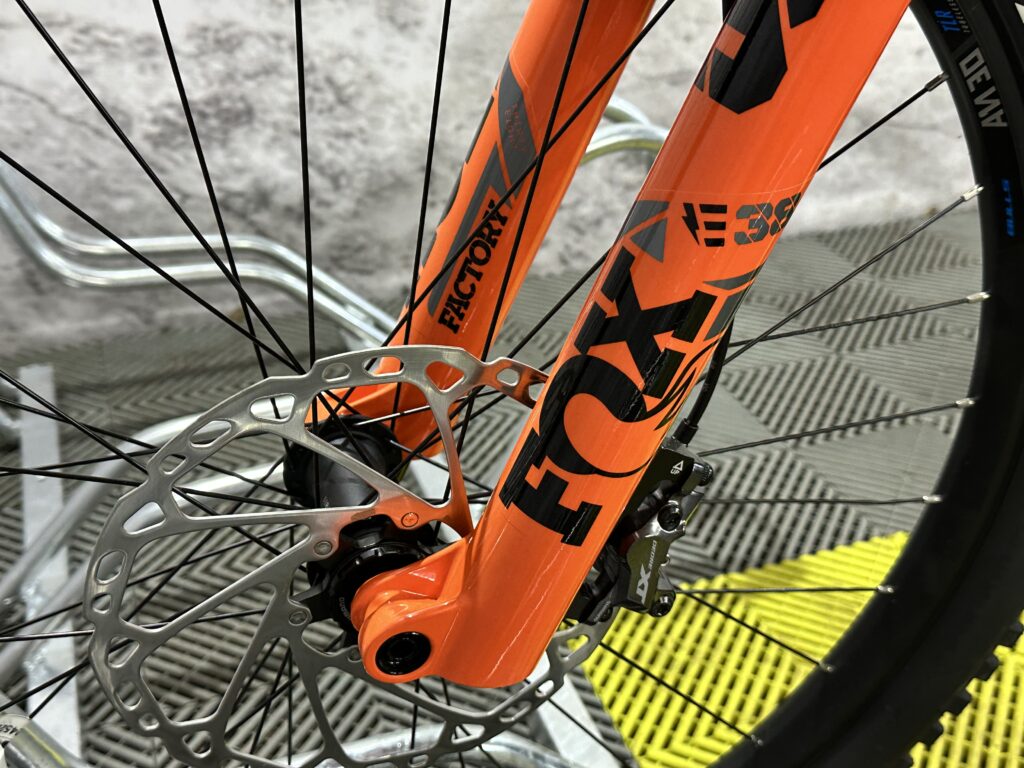 - Widelec: FOX Float 38 Factory-Series, 3 poziomy regulacji – skok 170 mm zapewnia doskonałą amortyzację na trudnych trasach.